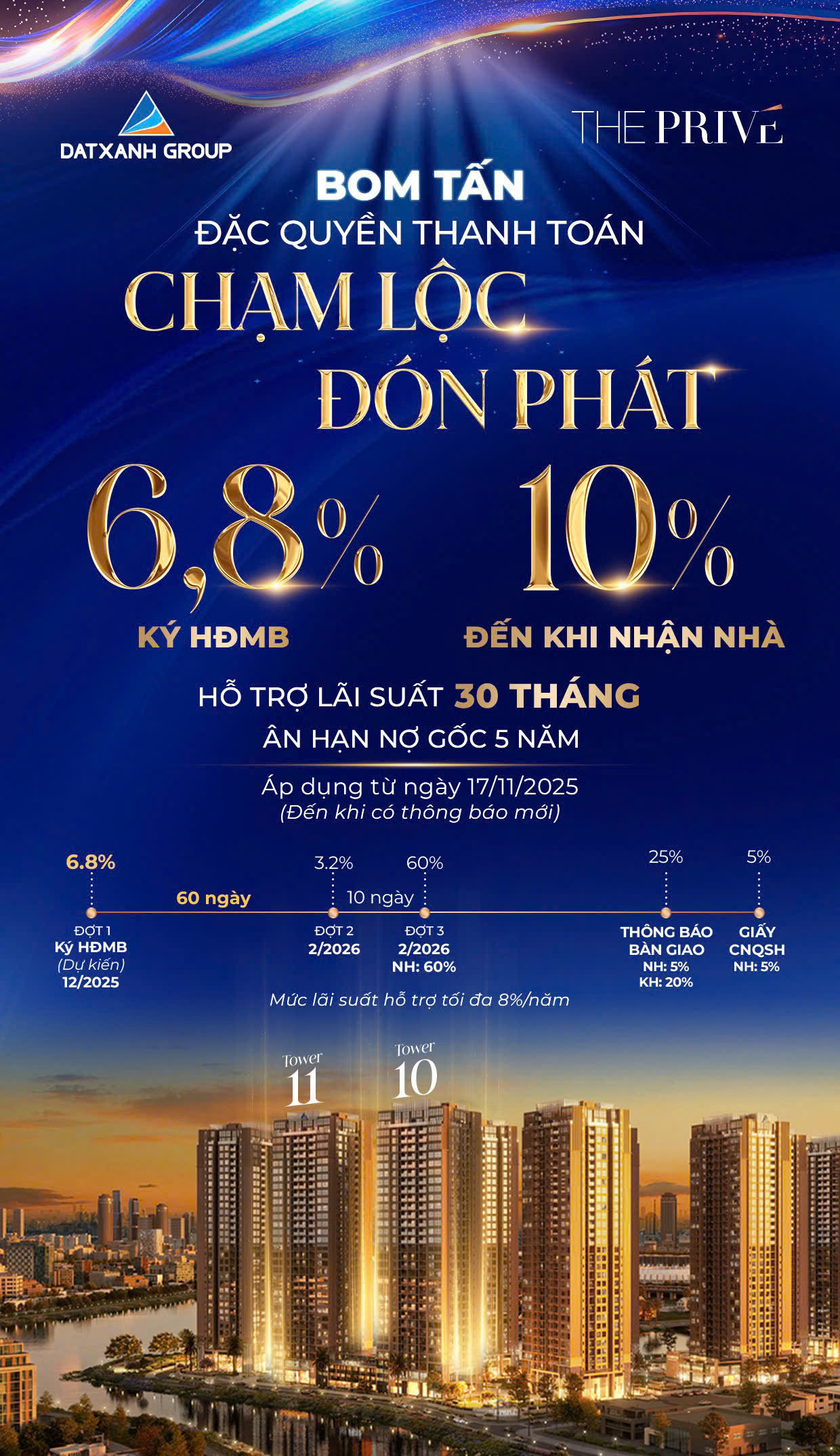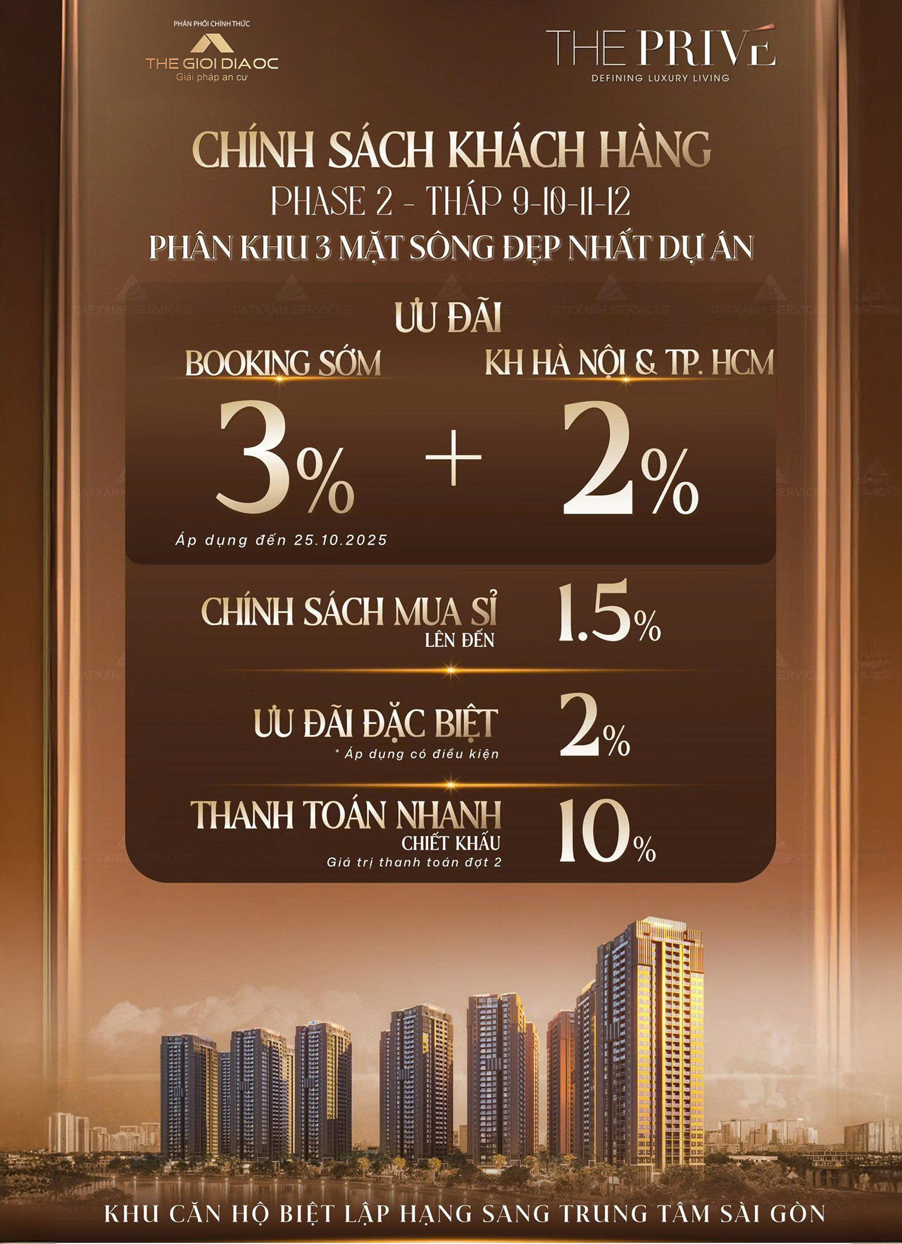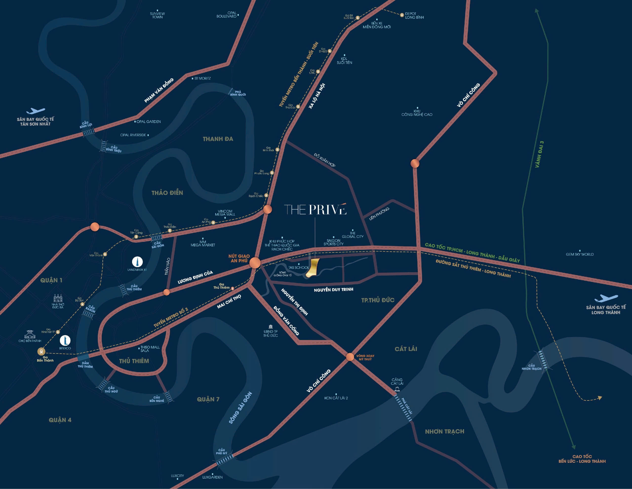 Tọa lạc tại vị trí vàng ven sông Nam Rạch Chiếc, giữa lòng An Phú – TP. Hồ Chí Minh, Dự án The Privé là tuyệt tác căn hộ hạng sang do Tập đoàn Đất Xanh kiến tạo, nơi ba mặt giáp sông giao hòa cùng công viên ven sông dài hơn 1km – một đặc quyền sống hiếm có giữa đô thị phồn hoa.