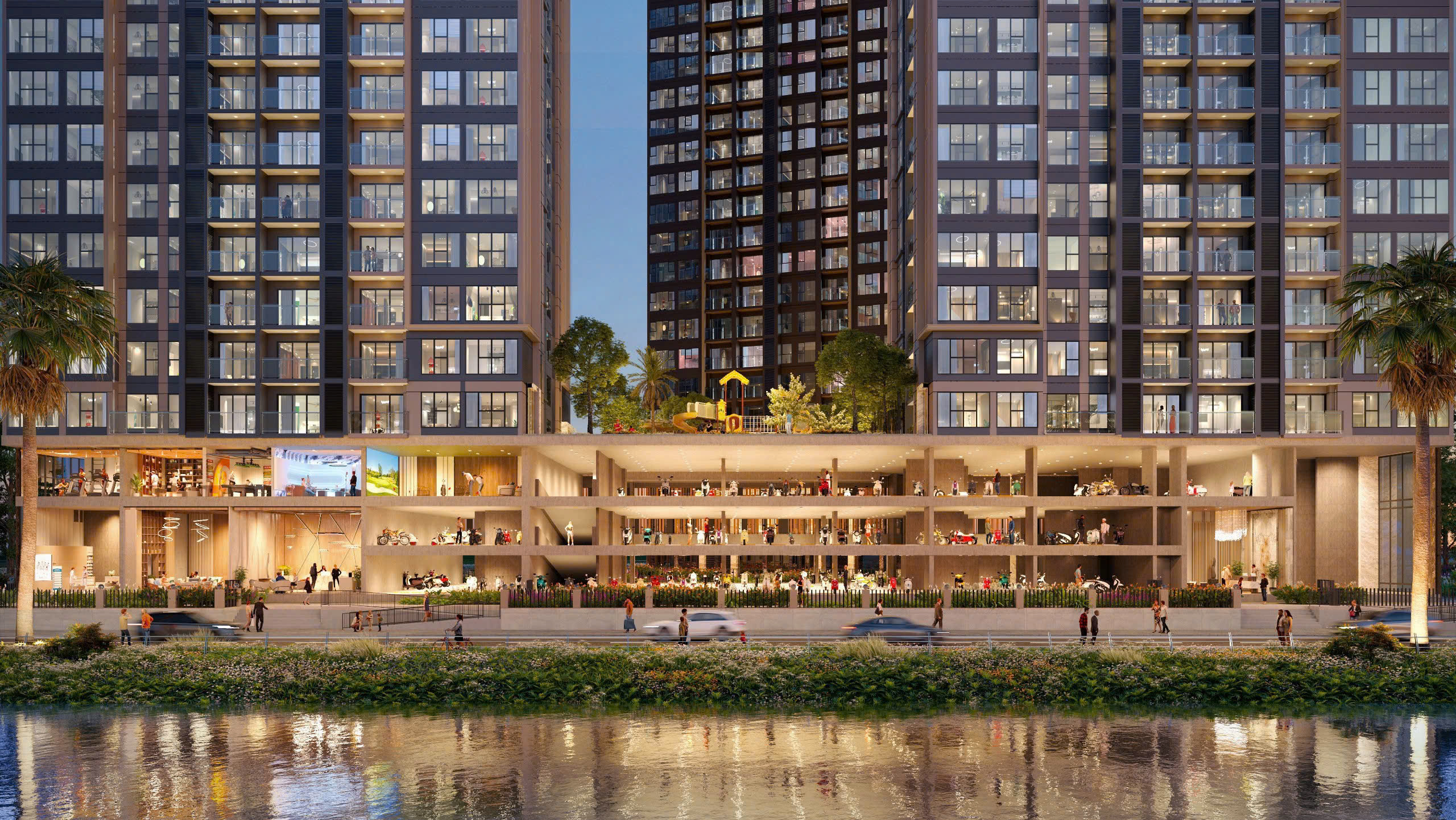 | Tiện ích | Trường mầm non và Trường Tiểu học, Công viên ,Trung tâm thể dục thể thao (gym, spa, yoga…), Quảng trường, Vườn nướng BBQ, khu ẩm thực, thư viện, phòng sinh hoạt chung, đường chạy bộ, bể bơi… |